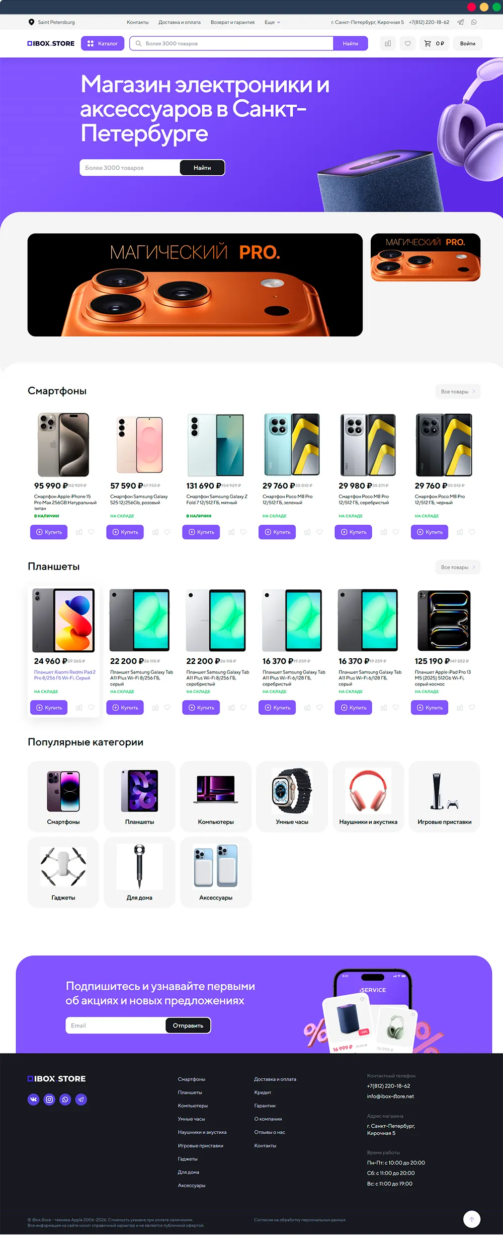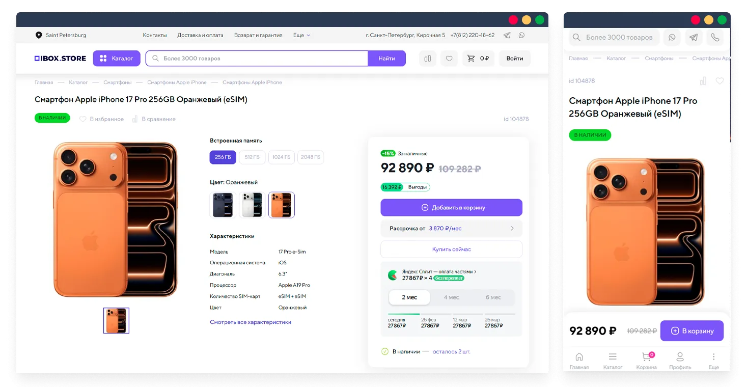Основной задачей было перенести готовую верстку на 1С-Битрикс, настроить торговый каталог и карточки товаров, интегрировать службы доставки и платежные системы для приема онлайн-оплаты. Важно было обеспечить удобную работу корзины, а также взять на себя дальнейшее администрирование и техническую поддержку сайта: оперативно вносить правки, обновлять модули и контролировать стабильность работы сервера.